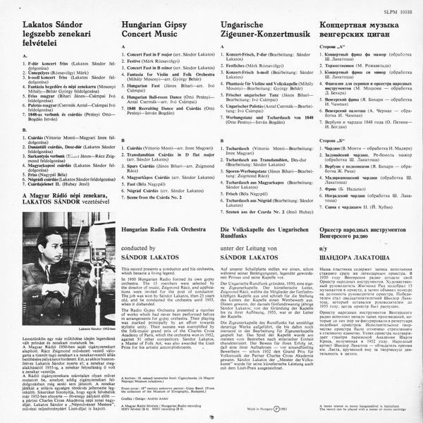 € 8.50 Media: Very Good Plus (VG+)Hoes: Very Good Plus (VG+)Gipsy Orchestra Of The Hungarian Radio*, Sándor Lakatos – Gipsy Concert Music (LP)