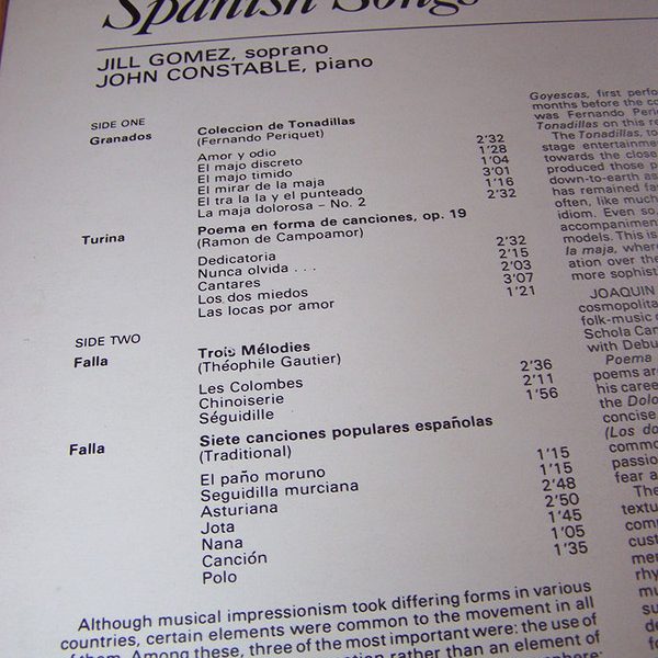 € 7.50 Media: Very Good (VG)Hoes: Very Good Plus (VG+)Granados*, Falla*, Turina*, Jill Gomez, John Constable – A Recital Of Spanish Songs (LP)