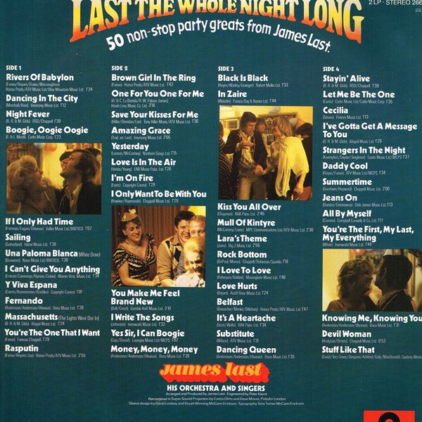 € 7.50 Media: Very Good Plus (VG+)Hoes: Very Good (VG)James Last – Last The Whole Night Long (2xLP, Album, Comp, Gat)