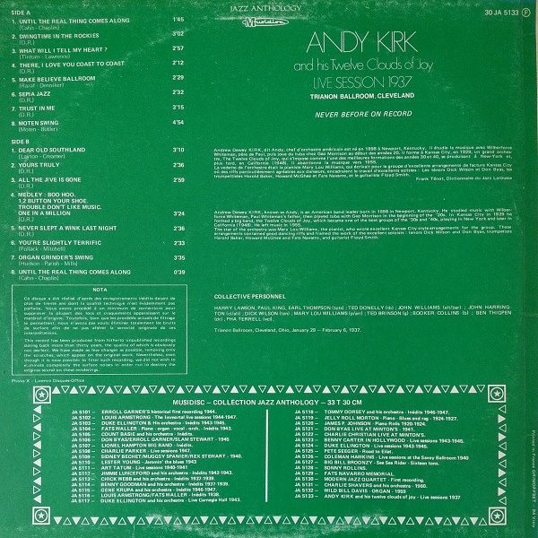 € 7.50 Media: Very Good Plus (VG+)Hoes: Very Good (VG)Andy Kirk And His Twelve Clouds Of Joy* – Live Session 1937 – Trianon Ballroom, Cleveland (LP)