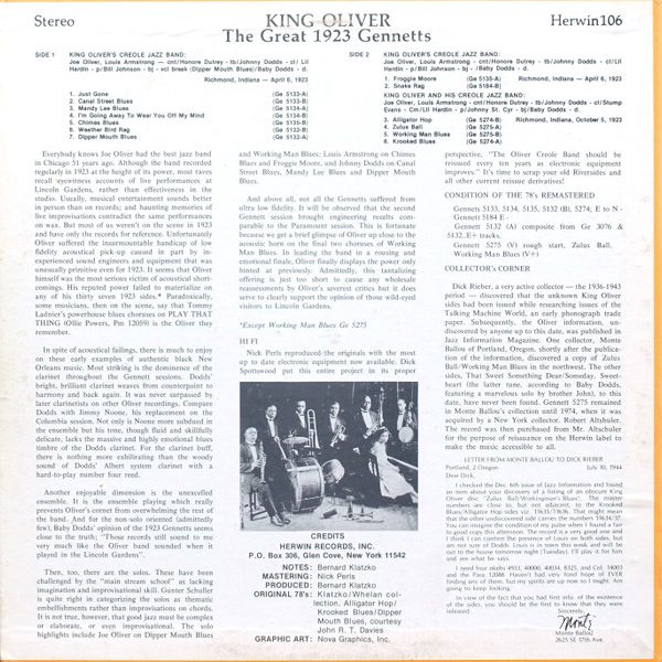 € 37.50 Media: Very Good (VG)Hoes: Very Good (VG)King Oliver – The Great 1923 Gennetts (LP, Comp)