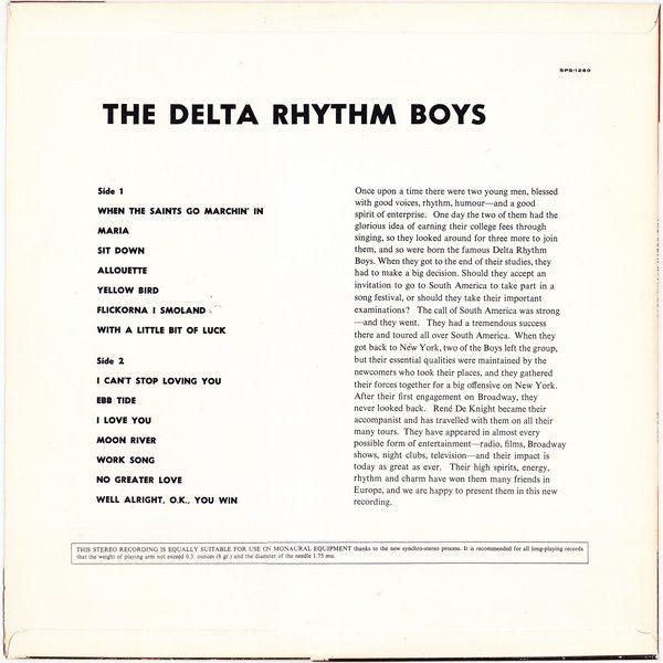 € 16.50 Media: Very Good Plus (VG+)Hoes: Very Good (VG)The Delta Rhythm Boys – The Delta Rythm Boys (LP)