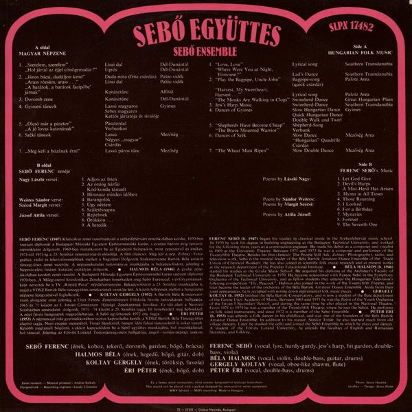 € 4.50 Media: Good Plus (G+)Hoes: Very Good Plus (VG+)Sebő Együttes* – Sebő Együttes = Sebő Ensemble (LP, Album, Gat)