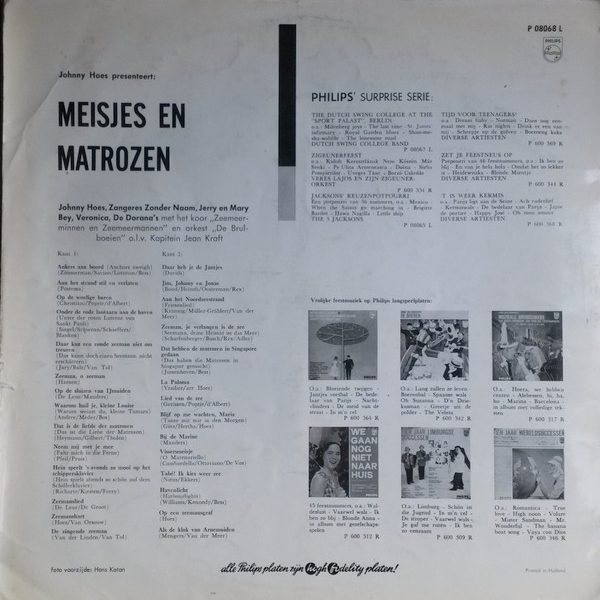 € 7.00 Media: Good (G)Hoes: Very Good (VG)Johnny Hoes, Zangeres Zonder Naam, Jerry En Mary Bey, Veronica (52), De Dorana’s Met Het Koor Zeemeerminnen En Meermannen* En Orkest De Brulboeien O.l.v. Kapitein Jean Kraft* – Johnny Hoes Presenteert: Meisjes En Matrozen (LP)