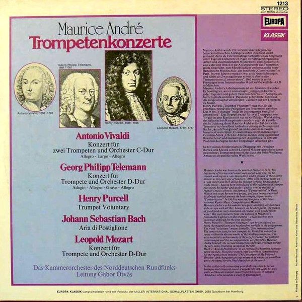 € 5.50 Media: Very Good (VG)Hoes: Very Good (VG)Pachelbel* / Fasch* – Maurice André, Orchestre De Chambre Jean-François Paillard – Le Canon De Pachelbel & Deux Suites Pour Cordes / Le Concerto Pour Trompette De Fasch & Deux Symphonies (LP, RE)