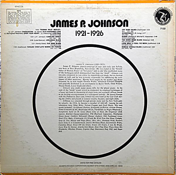 € 5.50 Media: Very Good Plus (VG+)Hoes: Very Good (VG)James Price Johnson – 1921-1926 (LP, Comp, Mono)