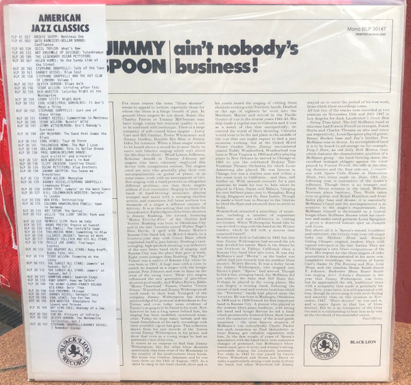 € 8.50 Media: Very Good Plus (VG+)Hoes: Very Good Plus (VG+)Jimmy Witherspoon – Ain’t Nobody’s Business (LP, Comp, Mono)