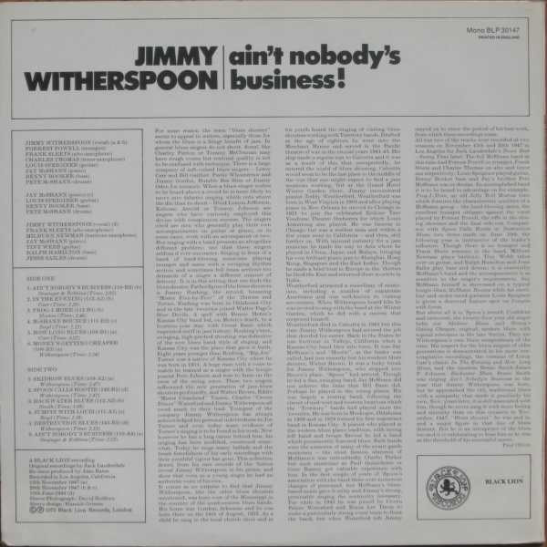 € 9.50 Media: Very Good Plus (VG+)Hoes: Very Good (VG)Jimmy Witherspoon – Ain’t Nobody’s Business (LP, Comp, Mono)