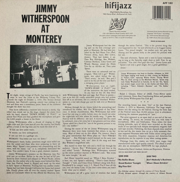 € 7.50 Media: Near Mint (NM or M-)Hoes: Very Good Plus (VG+)Jimmy Witherspoon – At The Monterey Jazz Festival (LP, Album)