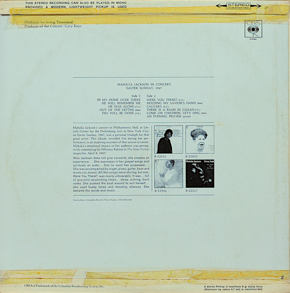 € 4.50 Media: Good Plus (G+)Hoes: Very Good (VG)Mahalia Jackson – Mahalia Jackson In Concert Easter Sunday, 1967 (LP, Album)