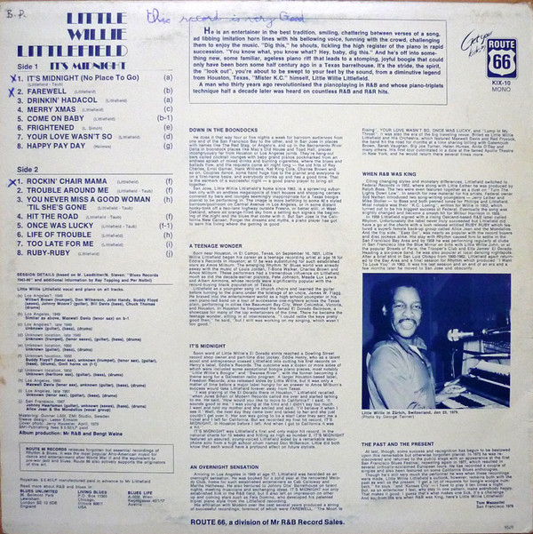 € 10.00 Media: Near Mint (NM or M-)Hoes: Very Good Plus (VG+)Little Willie Littlefield – It’s Midnight (LP, Comp, Mono)