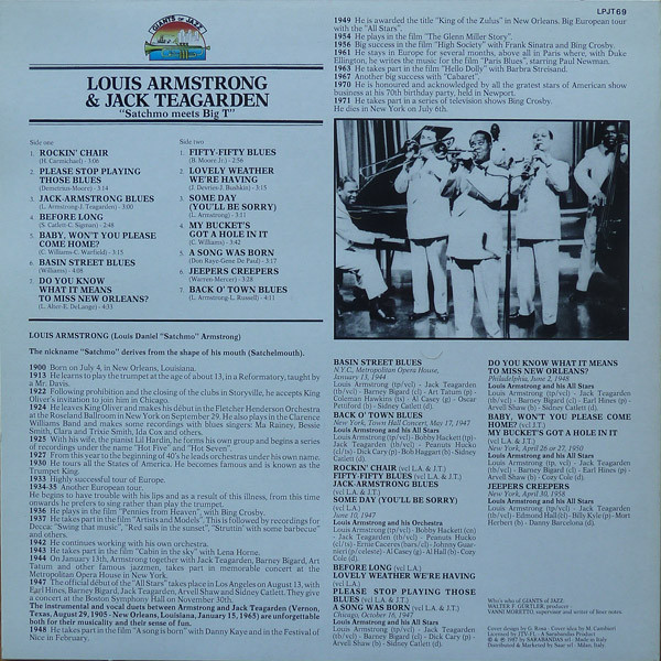 € 7.50 Media: Very Good Plus (VG+)Hoes: Very Good Plus (VG+)Louis Armstrong, Jack Teagarden – Satchmo Meets Big T (LP, Comp)