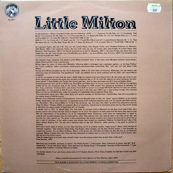 € 11.50 Media: Very Good Plus (VG+)Hoes: Very Good Plus (VG+)Little Milton – The Sun Masters (LP, Comp)
