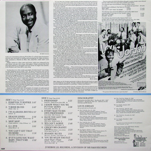 € 7.00 Media: Near Mint (NM or M-)Hoes: Very Good Plus (VG+)Louis Jordan – Louis Jordan Collates (LP, Album, Comp)