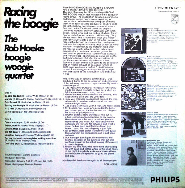 € 4.50 Media: Very Good (VG)Hoes: Good Plus (G+)The Rob Hoeke Boogie Woogie Quartet* – Racing The Boogie (LP, Album)