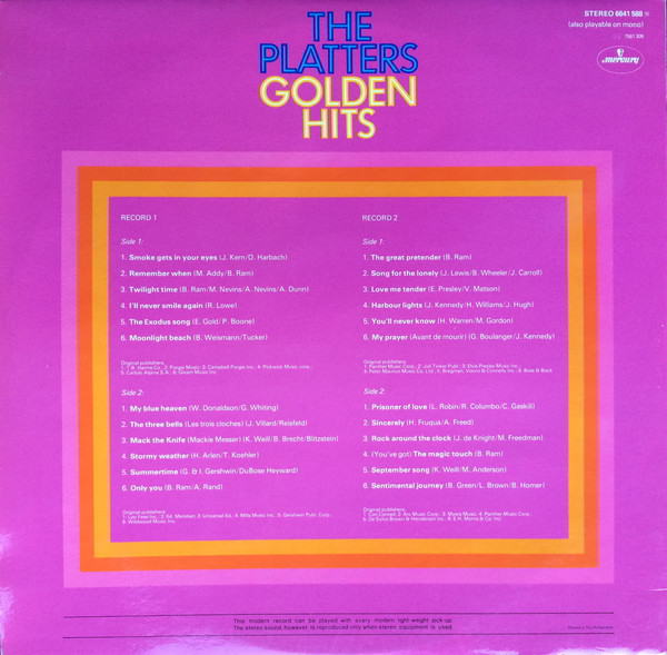 € 5.00 Media: Very Good Plus (VG+)Hoes: Good Plus (G+)The Platters – Golden Hits (2xLP, Comp)
