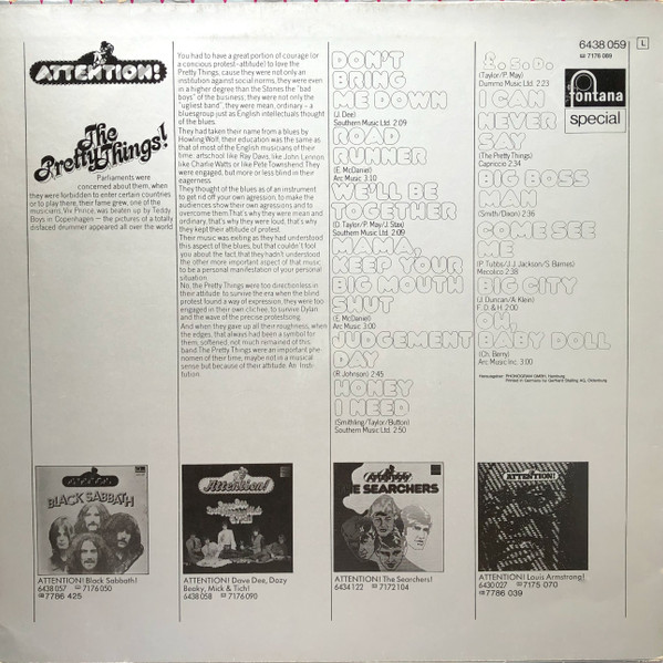 € 9.50 Media: Very Good Plus (VG+)Hoes: Very Good Plus (VG+)The Pretty Things – Attention! The Pretty Things! (LP, Comp)