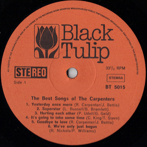 € 32.00 Media: Near Mint (NM or M-)Hoes: Very Good Plus (VG+)Unknown Artist – The Greatest Songs Of The Carpenters, Carole King (LP, Comp)