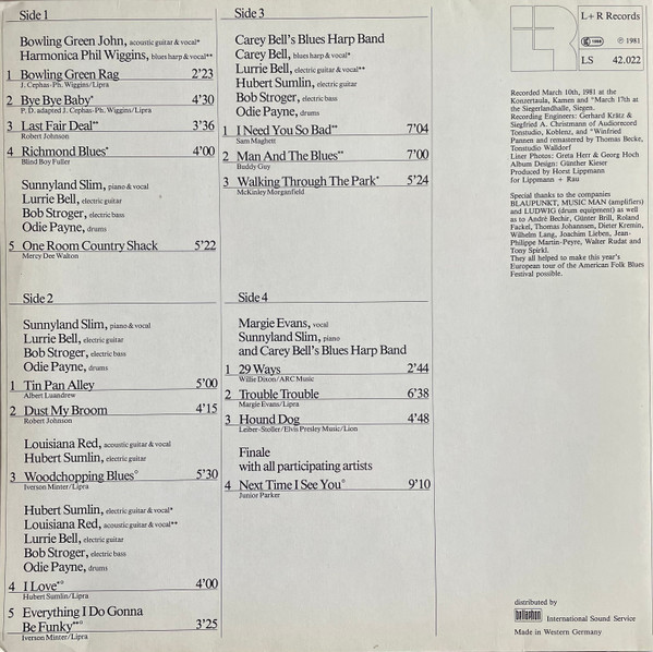 € 7.50 Media: Near Mint (NM or M-)Hoes: Very Good (VG)Various – American Folk Blues Festival ’82 (LP)