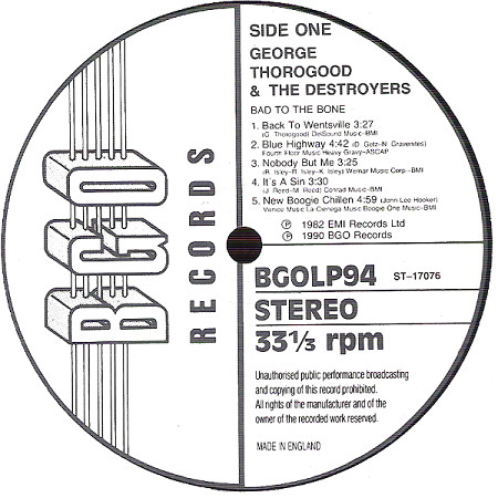 George Thorogood & The Destroyers – Bad To The Bone (LP, Album, RE)