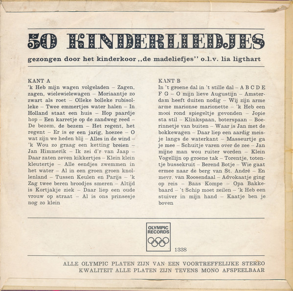 Kinderkoor “De Madeliefjes” o.l.v. Lia Ligthart – Kinderliedjes (LP, Album)