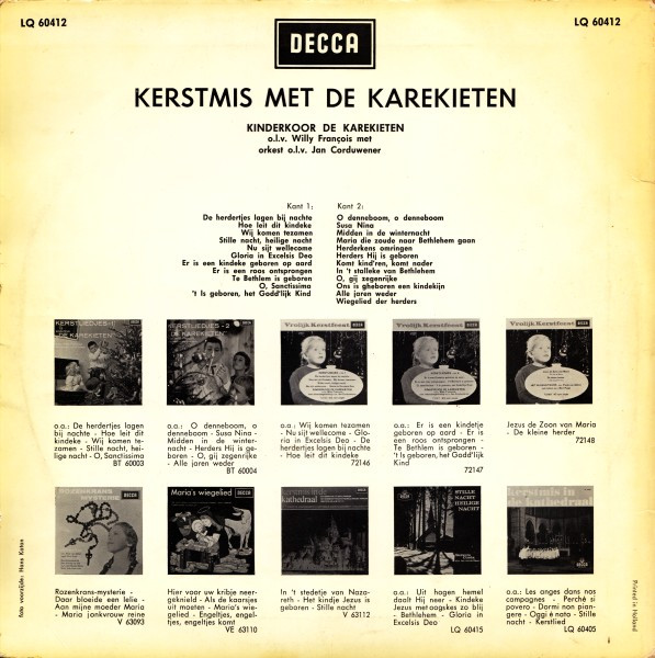 Kinderkoor De Karekieten O.l.v. Willy François Met Orkest Jan Corduwener – Kerstliedjes (10″)