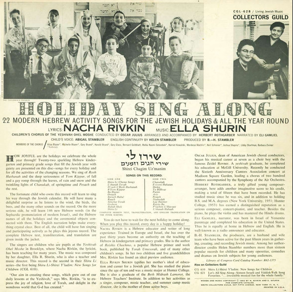Nacha Rivkin, Ella Shurin – Holiday Sing Along = שירו לי שירי חגים וזמנים (LP)