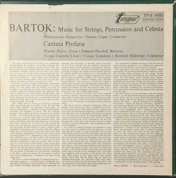 Béla Bartók – Thomas Ungar , Heinrich Hollreiser – Philharmonia Hungarica, Wiener Symphoniker – Cantata Profana And Music For Strings, Percussion And Celesta (LP)