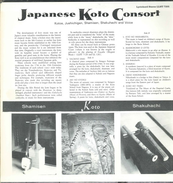 € 7.00 Media: Very Good Plus (VG+)Hoes: Very Good Plus (VG+)Various – Japanese Koto Consort: Kotos, Jushichigen, Shamisen, Shakuchachi And Voice (LP)