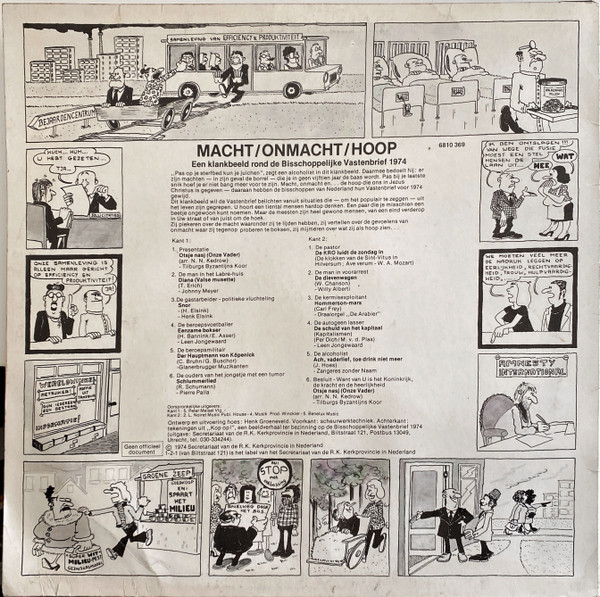€ 3.00 Media: Very Good (VG)Various – Macht / Onmacht / Hoop (Een Klankbeeld Rond De Bisschoppelijke Vastenbrief 1974) (LP)