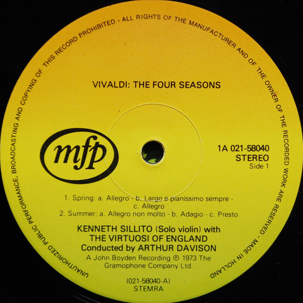 € 7.00 Media: Very Good Plus (VG+)Hoes: Very Good Plus (VG+)Vivaldi* – Kenneth Sillito, The Virtuosi Of England, Arthur Davison – De Vier Jaargetijden (LP, Album, RE)