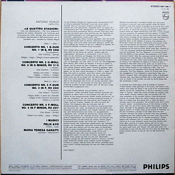 € 4.50 Media: Good (G)Hoes: Very Good (VG)Vivaldi* – I Musici, Félix Ayo – Le Quattro Stagioni (LP, Mono, Min)
