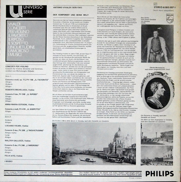 € 11.50 Media: Near Mint (NM or M-)Hoes: Very Good Plus (VG+)Vivaldi* – I Musici – Vivaldi-Konzert Mit Den I Musici (LP, Album)