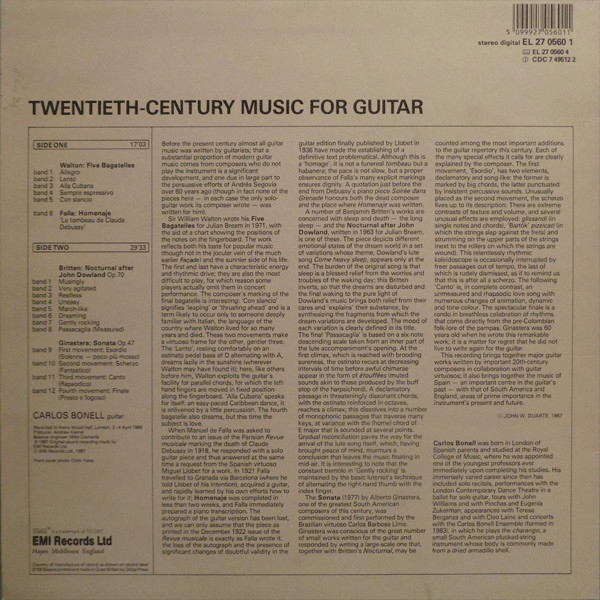 € 8.50 Media: Very Good Plus (VG+)Hoes: Very Good Plus (VG+)Britten*, Walton*, Falla*, Ginastera* – Carlos Bonell – Twentieth Century Music for Guitar (LP)