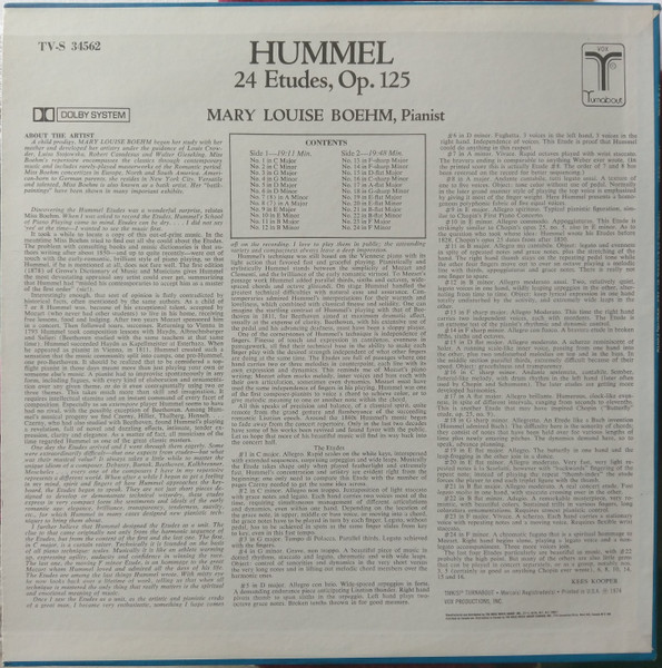€ 6.50 Media: Very Good Plus (VG+)Hoes: Very Good Plus (VG+)Hummel* – Mary Louise Boehm – 24 Etudes, Op. 125 (LP, RE)
