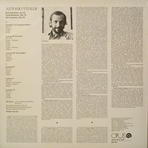 € 7.50 Media: Near Mint (NM or M-)Hoes: Very Good Plus (VG+)Antonio Vivaldi – Jiří Stivín, Slovak Chamber Orchestra, Bohdan Warchal – Six Concertos, Op. 10 (LP, Album, RP)