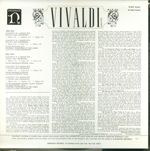 € 7.50 Media: Near Mint (NM or M-)Hoes: Very Good Plus (VG+)Antonio Vivaldi – Chamber Orchestra Of The Sarre*, Karl Ristenpart – Concertos For Violins, Concertos For Piccolo (LP, Album)