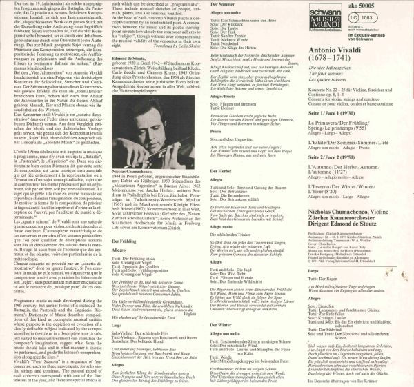 € 2.50 Media: Fair (F)Hoes: Very Good Plus (VG+)Antonio Vivaldi – Die Vier Jahreszeiten Opus 8 Nr 1-4 (LP, RE)