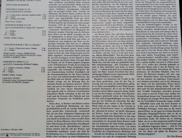 € 4.50 Media: Very Good Plus (VG+)Hoes: Very Good Plus (VG+)Antonio Vivaldi – I Solisti Veneti, Claudio Scimone – Festliche Konzerte (LP, Album)