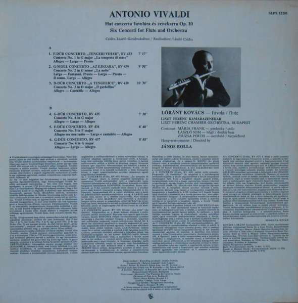 € 5.00 Media: Very Good (VG)Hoes: Very Good (VG)Antonio Vivaldi – Kovács Lóránt, Liszt Ferenc Chamber Orchestra, János Rolla – Six Flute Concerti (LP, Hun)