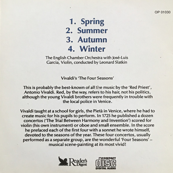 € 7.50 Media: Very Good Plus (VG+)Hoes: Very Good Plus (VG+)Antonio Vivaldi – Vivaldi’s ‘The Four Seasons’ (CD, Album)