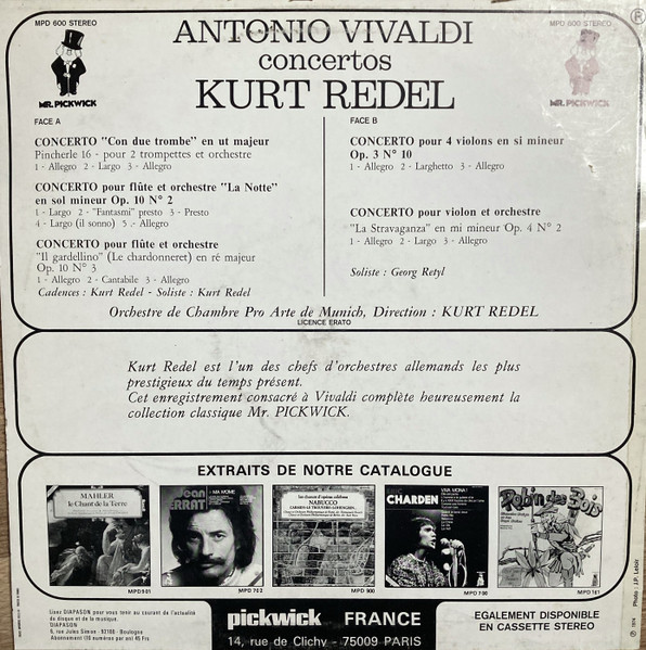 € 11.50 Media: Very Good Plus (VG+)Hoes: Very Good Plus (VG+)Antonio Vivaldi, Orchestre De Chambre Pro Arte De Münich*, Kurt Redel – Concertos (LP, Album)