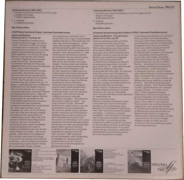 € 9.50 Media: Very Good Plus (VG+)Hoes: Very Good Plus (VG+)Johannes Brahms, Igor Zhukov, Большой Симфонический Оркестр Всесоюзного Радио – Brahms, Concert Voor Piano En Orkest No.2 in B, Op.83 (LP, Mono, Bla)