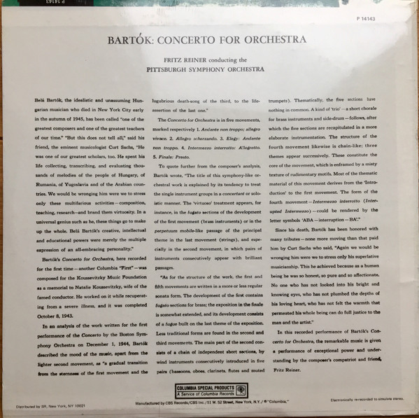 € 9.50 Media: Near Mint (NM or M-)Hoes: Very Good Plus (VG+)Bartók*, Fritz Reiner Conducting The Pittsburgh Symphony Orchestra – Concerto For Orchestra (LP, RE, Ele)