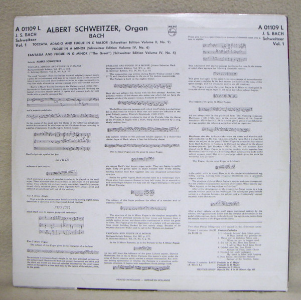 € 6.50 Media: Very Good (VG)Hoes: Very Good Plus (VG+)Bach*, Albert Schweitzer – Toccata, Adagio And Fuge C Minor – Fugue In A Minor – Fantasia And Fugue In G Minor – Vol. 1 (LP, Album, Mono)