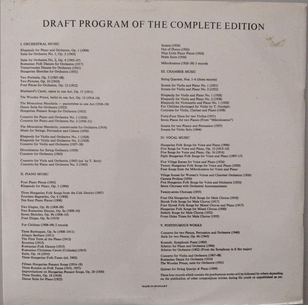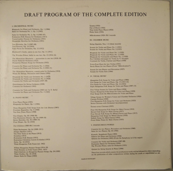 € 6.50 Media: Very Good (VG)Hoes: Very Good (VG)Bartók Béla* – Dezső Ránki – Piano Music (Three Burlesques Op. 8c / Allegro Barbaro / The First Term At The Piano / Sonatina / Rumanian Folk Dances / Rumanian Christmas Carols / Suite Op. 14 / Three Hungarian Folk-tunes) (LP, RP)