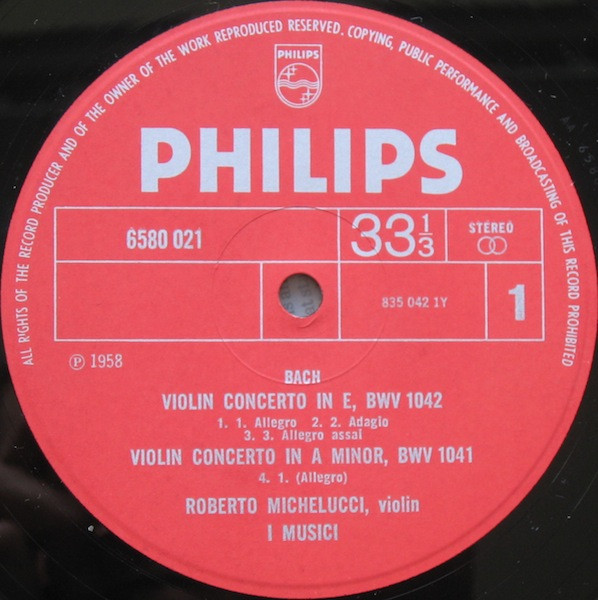 € 8.00 Media: Near Mint (NM or M-)Bach* Played By I Musici With Felix Ayo* & Roberto Michelucci – Violin Concertos And Concerto For Two Violins (LP, RE)