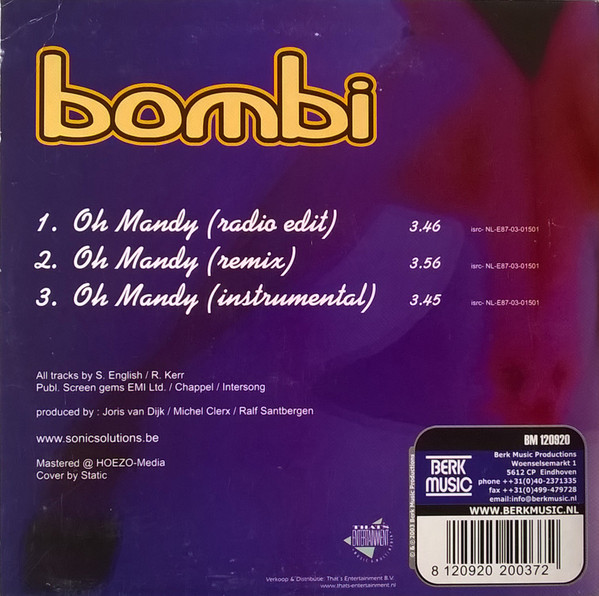 € 5.00 Media: Very Good Plus (VG+)Hoes: Good Plus (G+)Bombi – Oh Mandy (CD, Single)