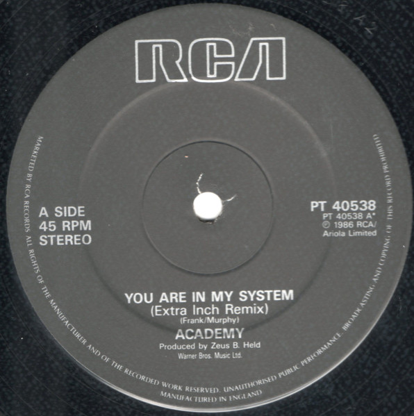 € 5.50 Media: Very Good (VG)Hoes: Very Good (VG)Academy – You Are In My System (12″)