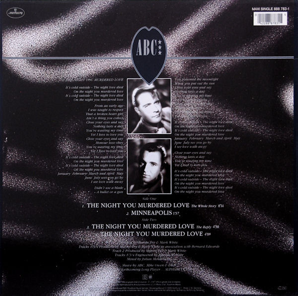 € 4.50 Media: Good Plus (G+)Hoes: Very Good (VG)ABC Featuring Contessa Lady V – The Night You Murdered Love (12″, Maxi)
